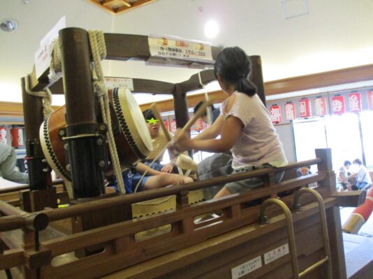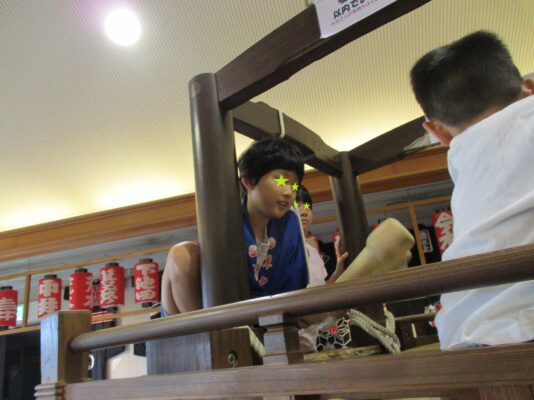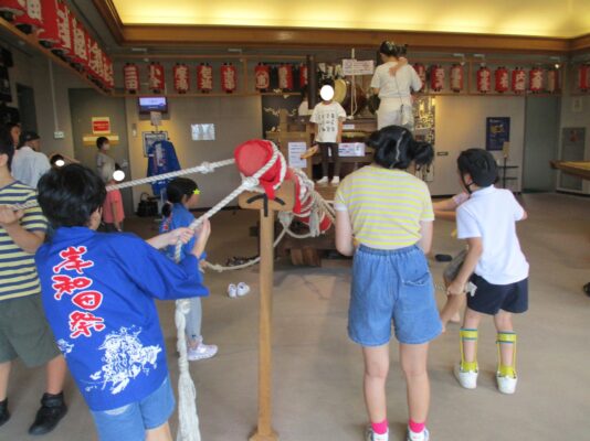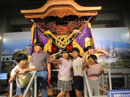 2階には大きな本物のだんじりが展示されていて、みんな大興奮😃