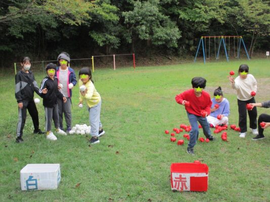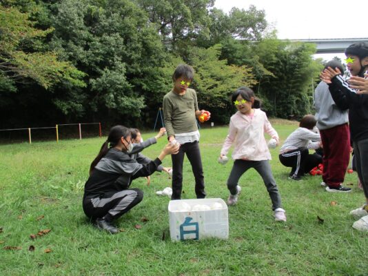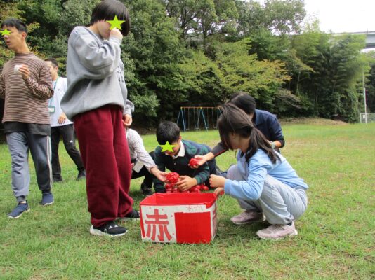 チームに分かれ箱をめがけて球を投げ合いました⚪🔴