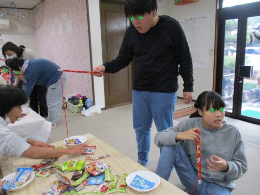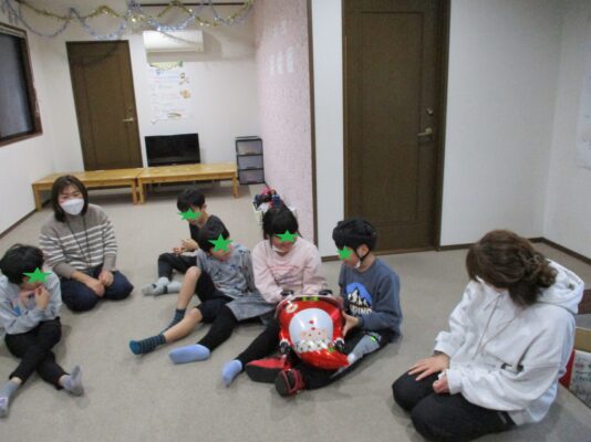 サンタクロースのバルーンをみんなで繋いでいって音楽が止まったら質問タイム🙋♂️